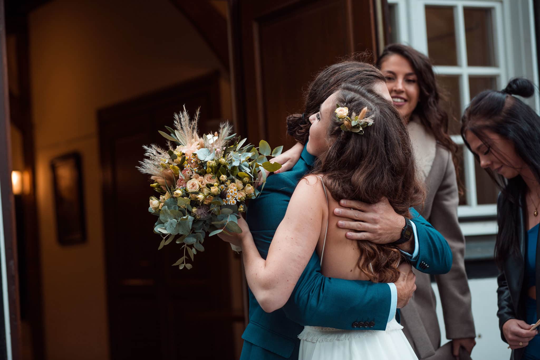 Unser Fotograf agiert diskret im Hintergrund, um die schönsten Momente eurer standesamtlichen Trauung festzuhalten, während ihr euch entspannt zurücklehnen und eure Hochzeit in vollen Zügen genießen könnt.